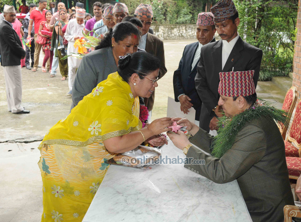 शुभकामना दिन निर्मल निवासको ढोका अगाडी